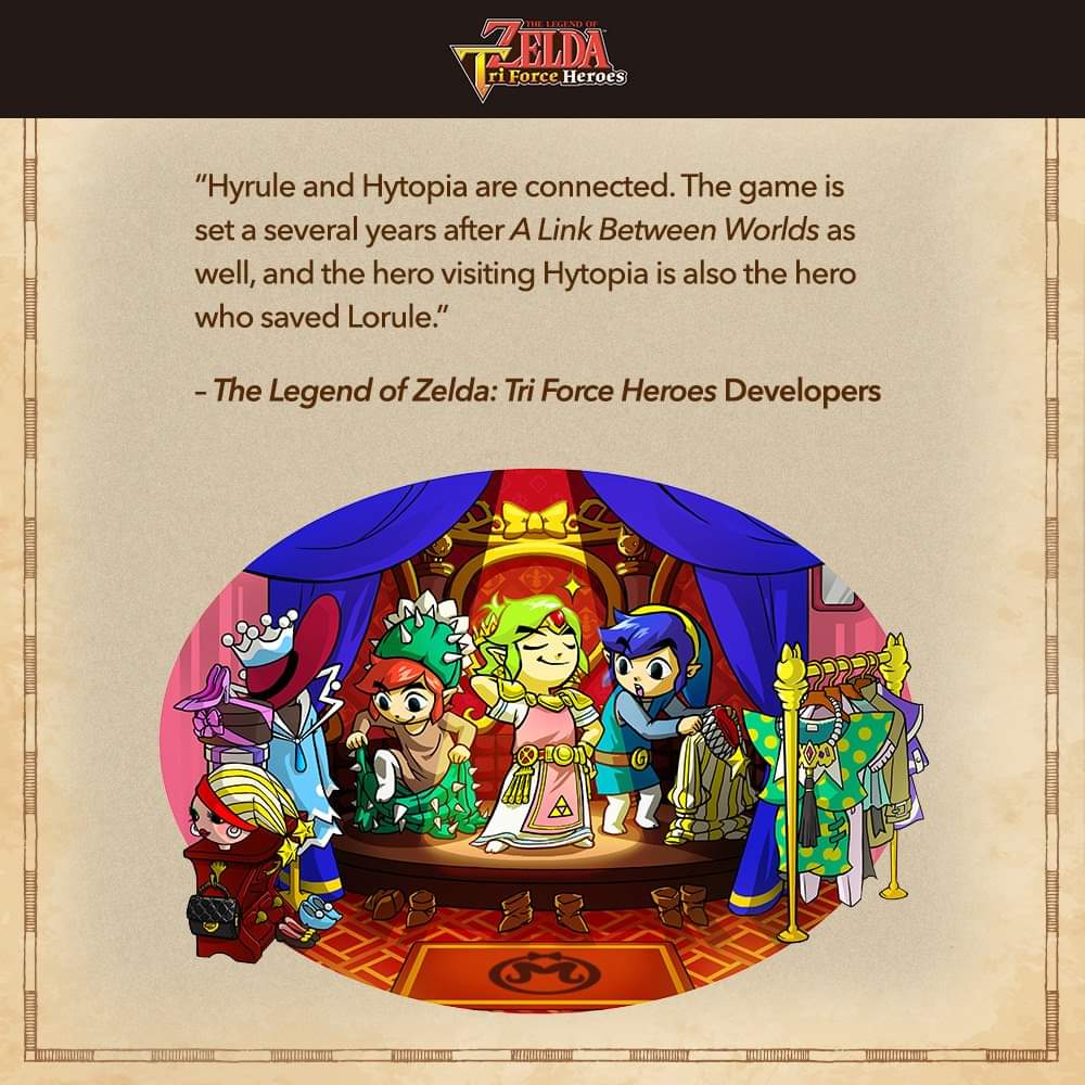 Fans asked the developers of The Legend of Zelda: Tri Force Heroes: “Most games in The Legend of Zelda series have a connection to Hyrule. Does the land of Hytopia connect to Hyrule in any way?” And the developers answered…