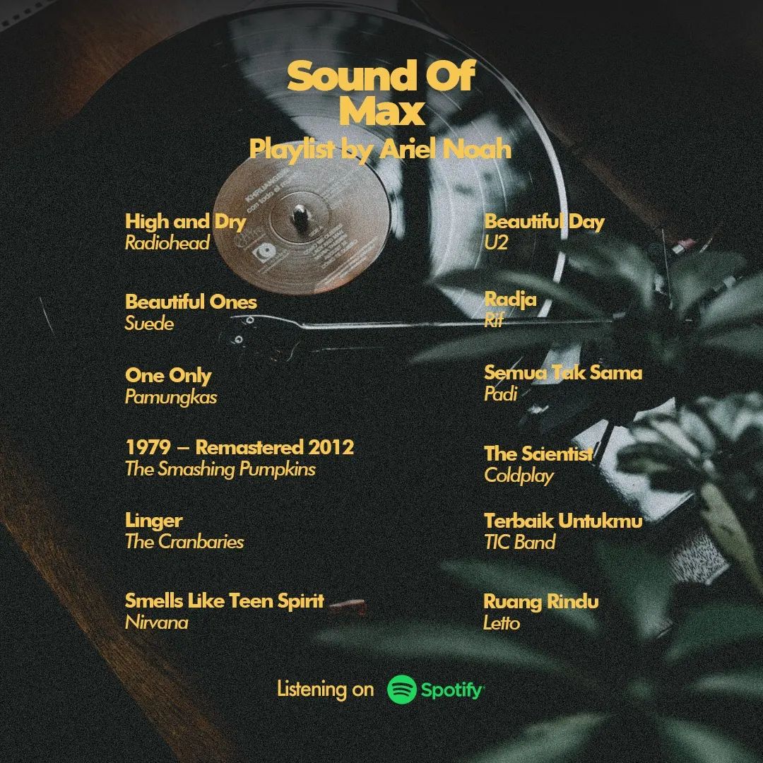 Ini dia playlist lagu @arielnoah yang akhir-akhir ini lagi sering didengerin banget sama bang Boriel. Playlist ini juga jadi salah satu inspirasi buat Boril untuk terus berkarya dan menciptakan lagu yang populer dan hits pastinya 🔥