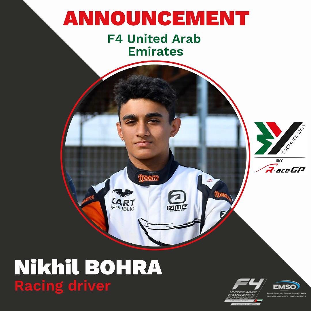 Originally from New York City, Nikhil Bohra part of ADD Management, currently lives in Singapore and is 16 years old. He began his motorsport journey in India after being recruited by a team that spotted him driving rental karts on his 8th birthday. Nikhil is a multiple time Asia karting champion and is excited to return to the circuit and compete with the world’s top drivers in the new generation F4 after taking a two year break from racing due to Covid-19. 3Y by R ace Gp is glad to work with him in the upcoming F4 UAE championship.