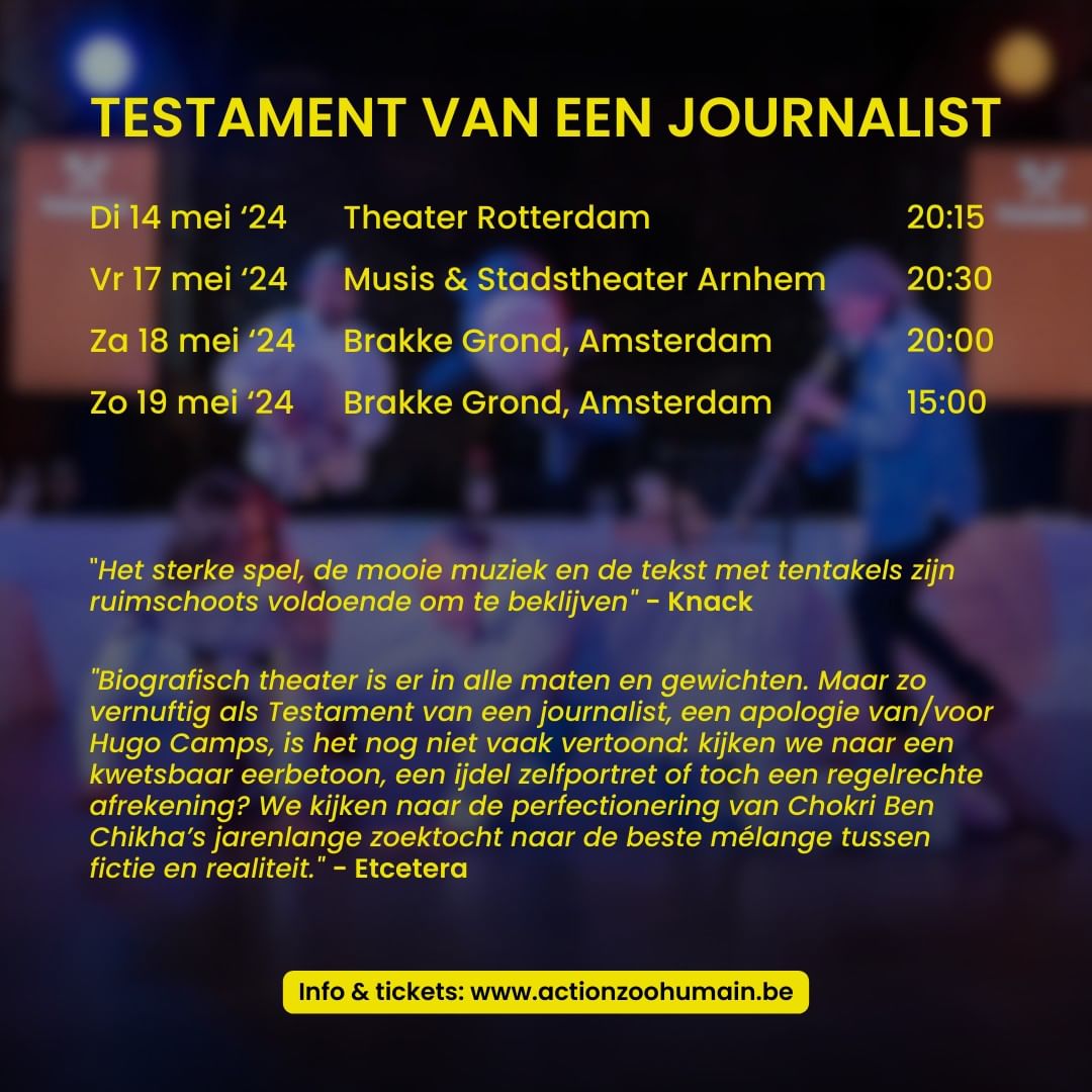 De laatste voorstellingen van Testament van een Journalist รฉn De Waarheidscommissie binnenkort in Nederland! Wees er bij! ๐—ง๐—ฒ๐˜€๐˜๐—ฎ๐—บ๐—ฒ๐—ป๐˜ ๐˜ƒ๐—ฎ๐—ป ๐—ฒ๐—ฒ๐—ป ๐—๐—ผ๐˜‚๐—ฟ๐—ป๐—ฎ๐—น๐—ถ๐˜€๐˜ wo 24 & do 25 april '24 - @ntgent Minnemeers (Belgiรซ) vr 3 mei '24 - @cclokeren (Belgiรซ) di 14 mei '24 - @theaterrotterdam vr 17 mei '24 - @musisenstadstheater, Arnhem za 18 & zo 19 mei '24 - @brakkegrond, Amsterdam ๐——๐—ฒ ๐—ช๐—ฎ๐—ฎ๐—ฟ๐—ต๐—ฒ๐—ถ๐—ฑ๐˜€๐—ฐ๐—ผ๐—บ๐—บ๐—ถ๐˜€๐˜€๐—ถ๐—ฒ ๐—ก๐—ฒ๐—ฑ๐—ฒ๐—ฟ๐—น๐—ฎ๐—ป๐—ฑ do 4 april '24 - @eerstekamer, Den Haag โ†’ 2 voorstellingen vr 5 april '24 - Internationaal Perscentrum @nieuwspoort, Den Haag Info & tickets ๐Ÿ‘‰ Link in bio ___ #testamentvaneenjournalist #hugocamps #waarheidscommissie #nederland #rotterdam #arnhem #amsterdam #koloniaalverleden #journalistiek #theater #dans #actionzoohumain