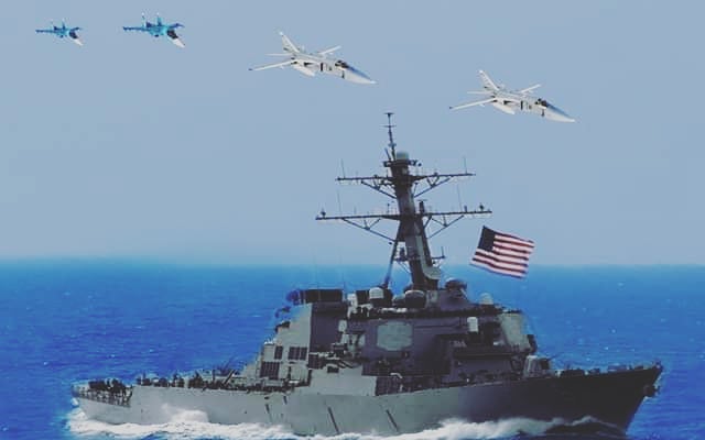 ВКС РФ У ЧОРНОМУ МОРІ ЗІМІТУВАЛИ АТАКУ НА АМЕРИКАНСЬКИЙ ЕСМІНЕЦЬ (Для візуалізації - фотоколаж)