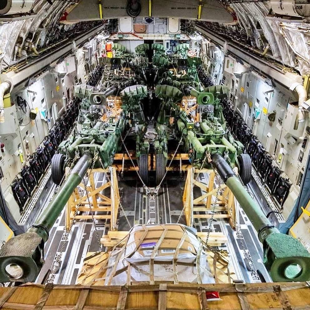 🇺🇸 🇺🇦The United States Department of Defense (DoD) officially informs, that "155 mm M777 towed howitzers are secured for transportation to Ukraine by United States Air Force airmen as part of U.S. security assistance".