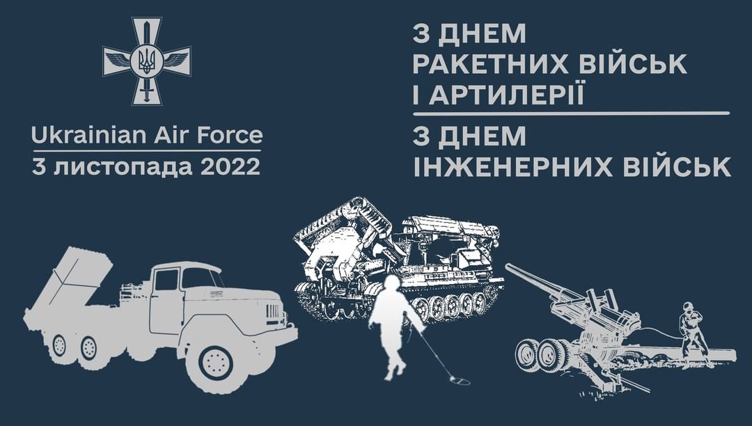 Повітряні Сили Збройних Сил України вітають захисників і захисниць, які героїчно боронять рідну землю у складі ракетних військ і артилерії, а також інженерних військ Збройних Сил України!