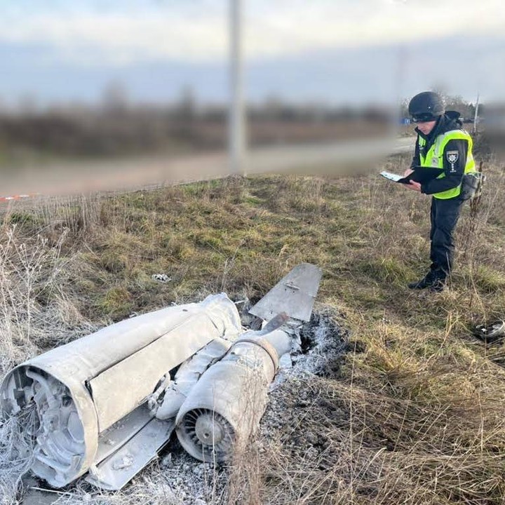 Залишки збитої російської крилатої ракети ------ Remains of the downed russian cruise missile
