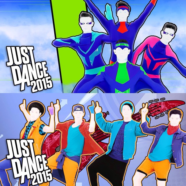 It was funny to dance as a super hero for the @onedirection and as a @5sos in @justdancegame 2015... Green, blue, red , pink ? Hat, Snapback, beanie, haircut ? Do you find me on those two pictures ? 😊