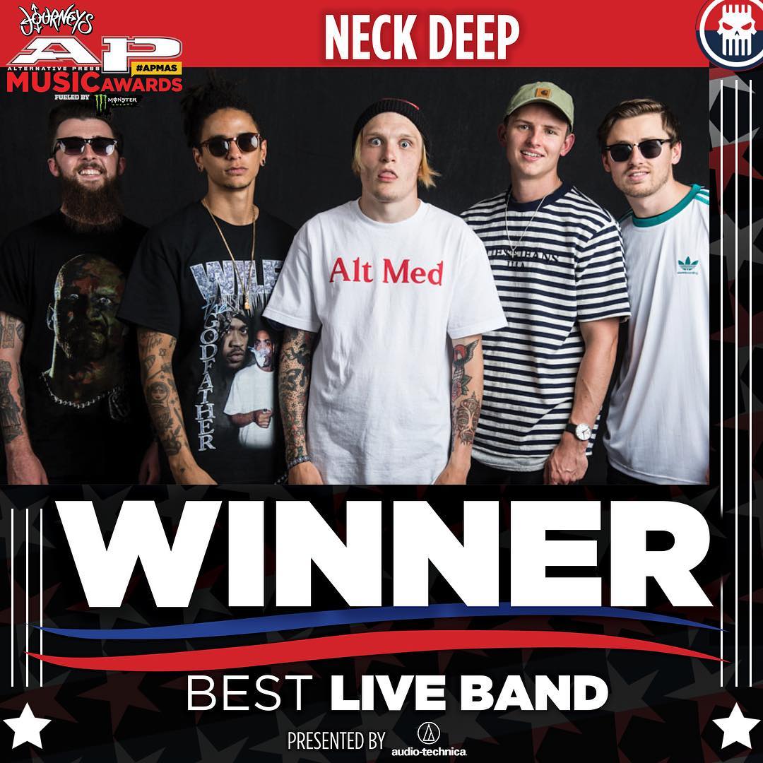 The Skully for Best Live Band presented by @AudioTechnicaUK goes to @NeckDeepUK 💀 #APMAS
