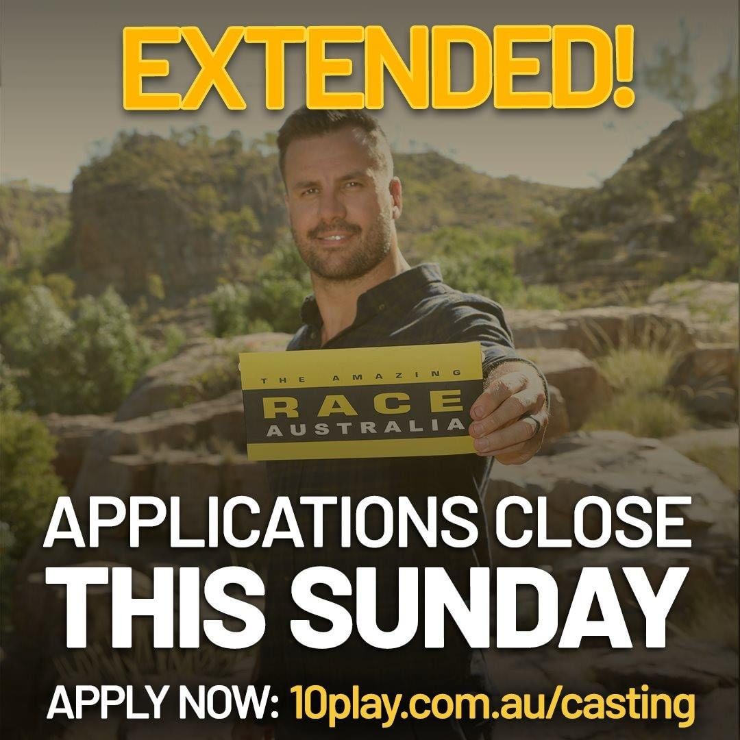 APPLICATIONS EXTENDED - This is your LAST CHANCE to apply for The Amazing Race Australia, head to 10play to start (or finish 😉 ) your application #AmazingRaceAU