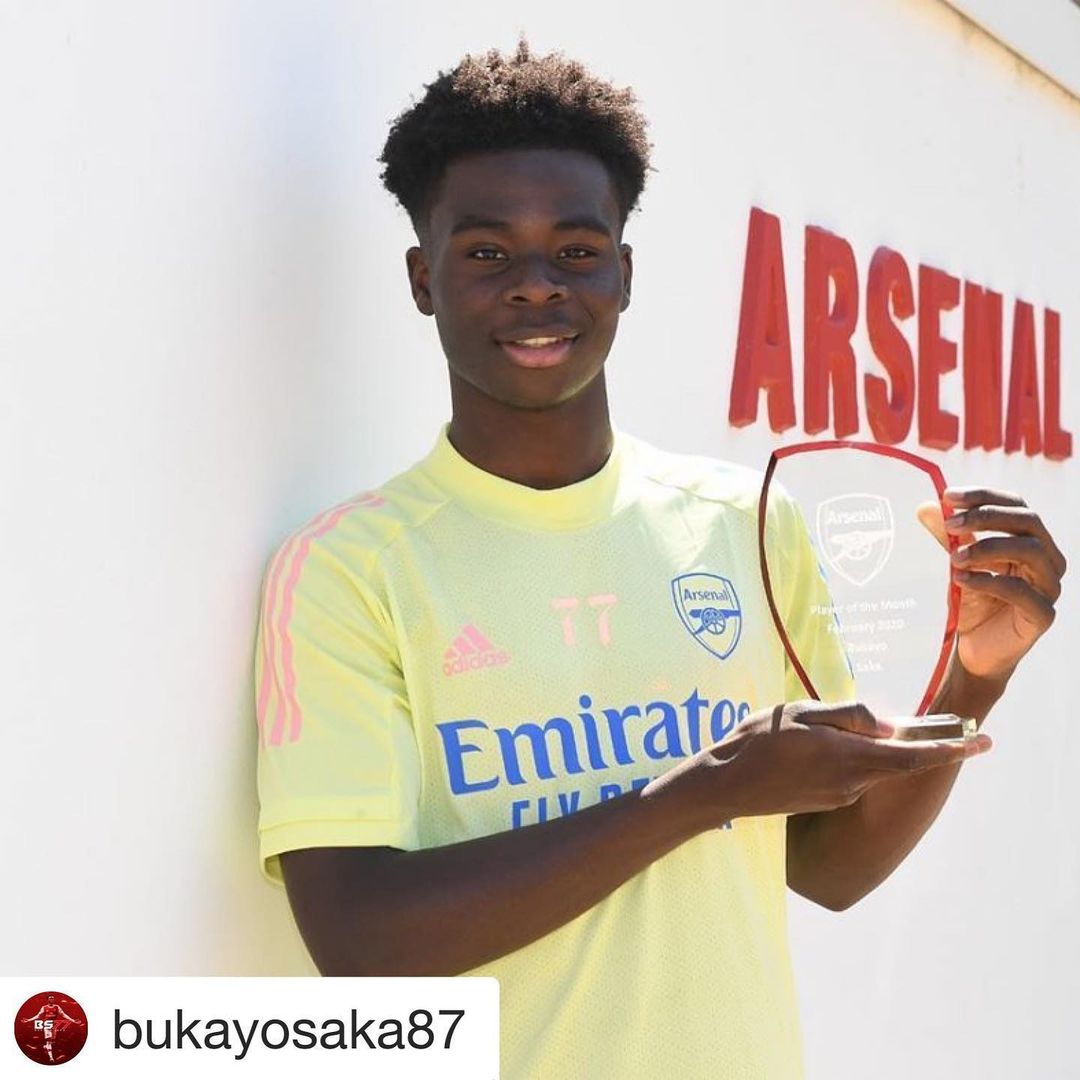 #Repost @bukayosaka87 ・・・ Just received my February player of the month trophy 🏆 Better late than never 🤷🏿‍♂️😃 Thanks to all the fans who voted ❤️
