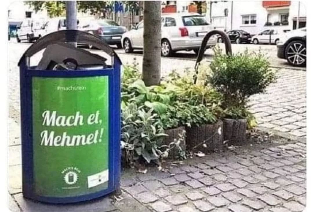 Almanya'da "çöpünü buraya at Mehmet" yazan çöp kovaları.