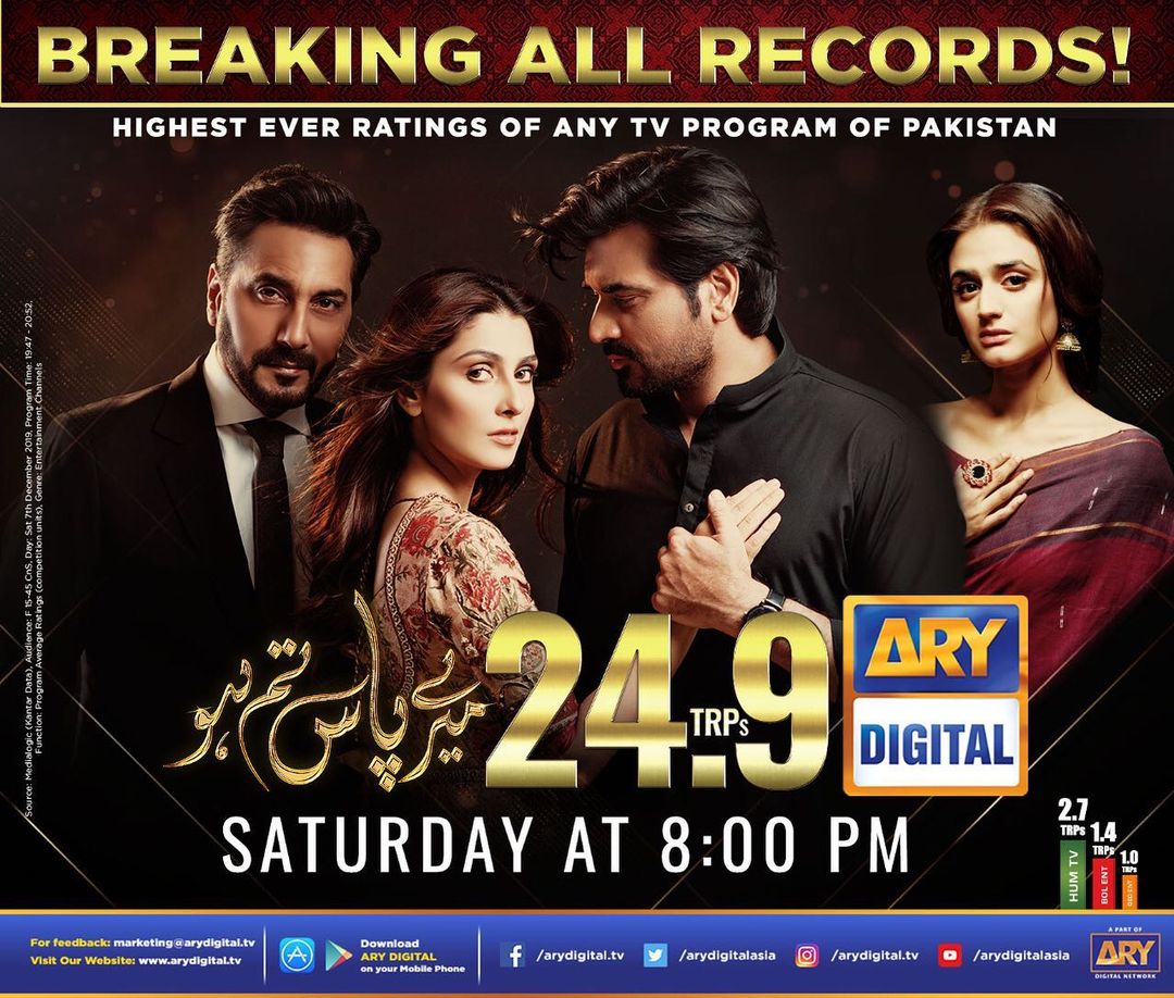 #MerayPaasTumHo breaks its own record, and once again get the Highest EVER Ratings of Any TV Program of Pakistan! What an achievement! We are truly overwhelmed by all the love! Keep watching #MerayPaasTumHo every Saturday at 8:00 PM only on #ARYDigital!