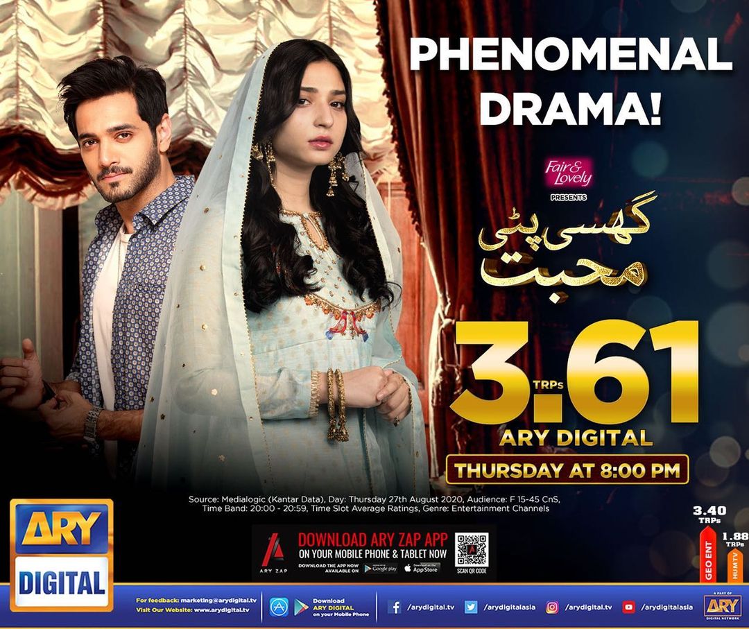 Phenomenal Drama! Thank you viewer’s for watching and appreciating #GhisiPitiMohabbat on #ARYDigital! @wahaj.official @ramshakhanofficial