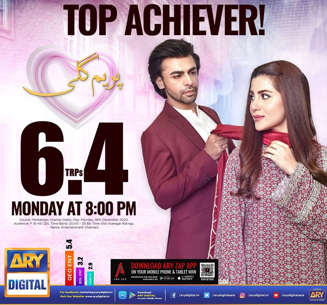 #PremGali is the Top Achiever ‼️ Keep watching it every Monday at 8:00 PM only on #ARYDigital @farhan_saeed @sohaialiabroofficial