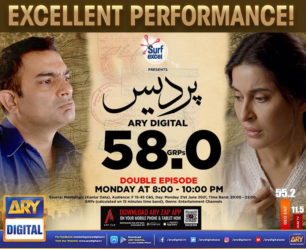Excellent Performance of drama serial #Pardes. Watch a new double episode, every Monday from 8:00 to 10:00PM - only on #ARYDigital @khoosat @iamshaistalodhi