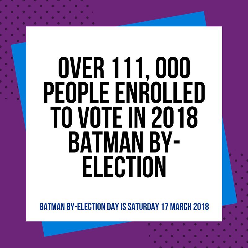 A total of 111 857 people are enrolled to vote in the #Batman by-election to be held on Saturday, 17 March 2018