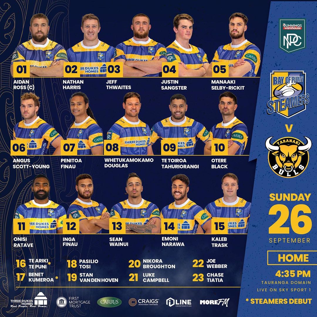 💨 vs 🐂 Former Bay of Plenty Under 19 captain Benet Kumeroa is set to make his debut for the Steamers this Sunday as well as Te Ariki Te Puni who has been called into the team as injury cover. Unfortunately under Alert Level 2 restrictions the match will be played with a strict no crowd policy, but supporters can watch the game Live on @skysportnz 1!