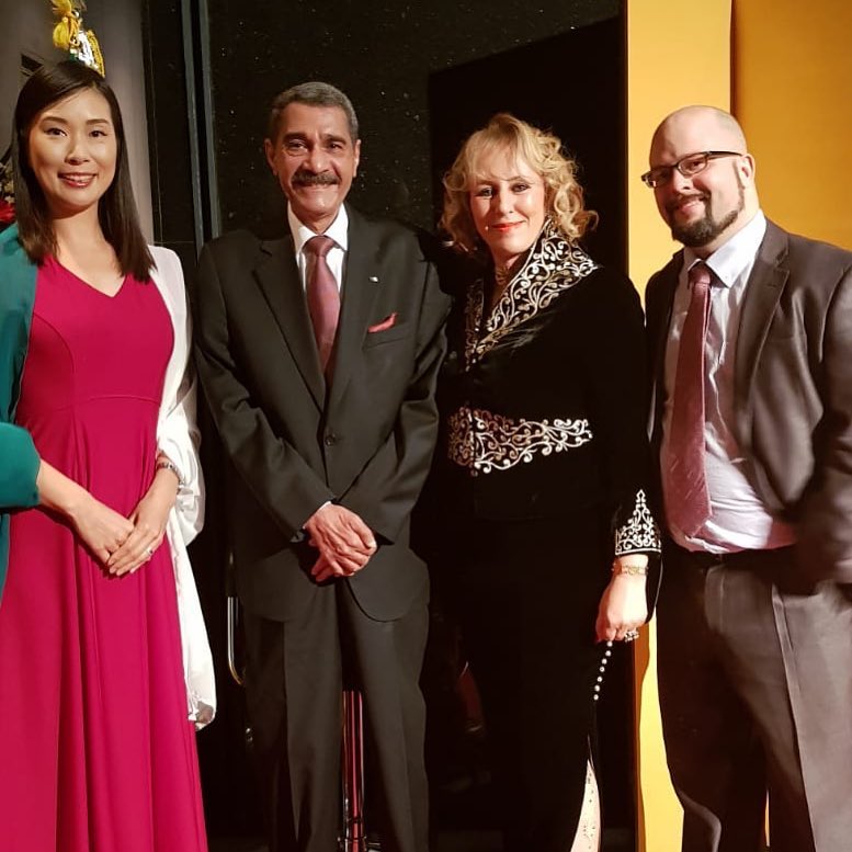 ItWas a pleasure to sing yesterday for the Algerian national Day celebration at the Grand Hyatt Hotel. Here, our conductor, Dr. Ryan Goessl and Alto - Rina Okumura, are pictures with Ale@geria Ambassador Durragui and his spouse, Chafika. @camarata_cmc #camaratamusic #camaratamusiccompany