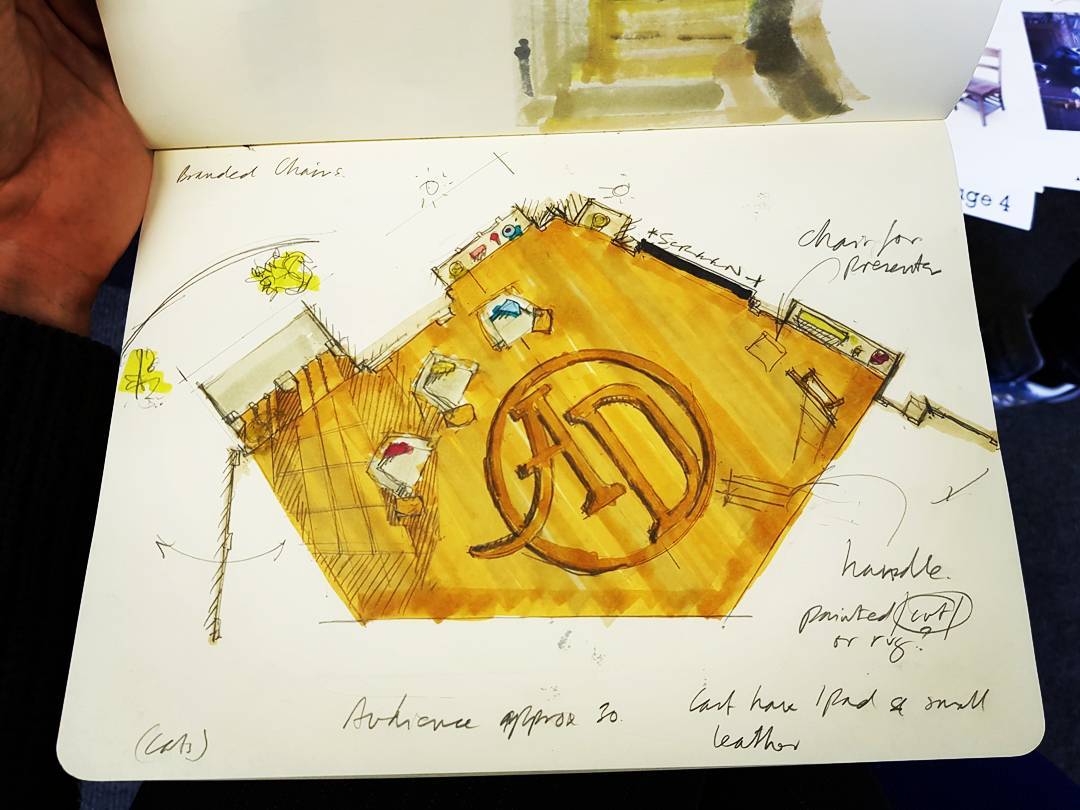 Today's episode of #armchairdetectives has a HUGE twist enjoy...here's a bonus pick of the first set sketch by our amazing designer. Not far off aye! #whodunnit