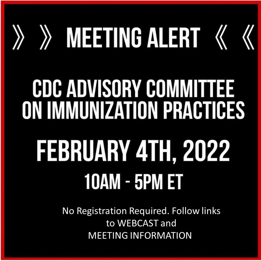 The CDC's Advisory Committee on Immunization Practices will be holding a meeting on Friday Feb 4th from 10AM - 5PM ET.