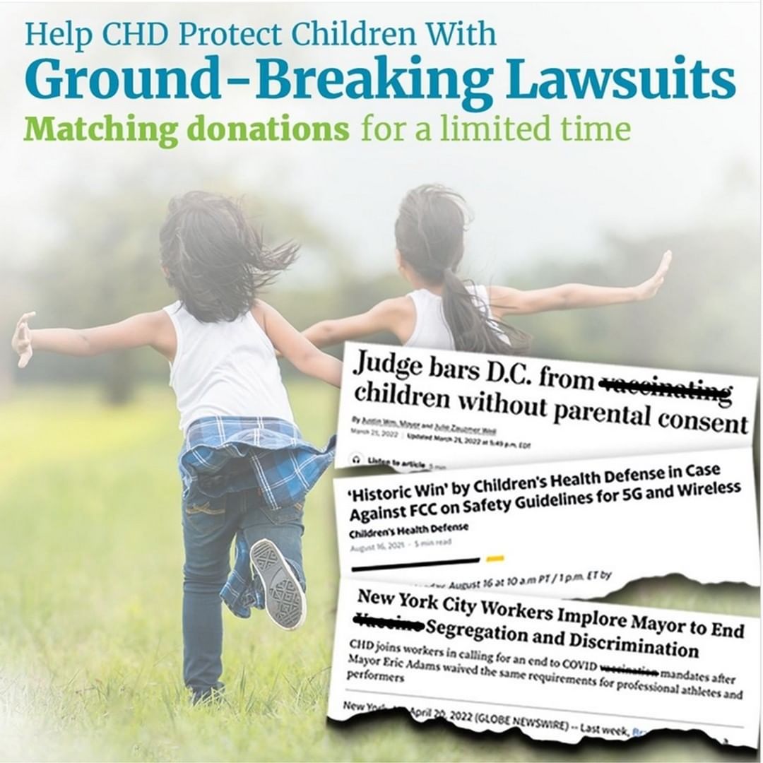 Big Pharma + Big Government are coming for the children but CHD intends to stand firmly in the way. We’re now involved in over 50 lawsuits to protect children. Please help us fund our litigation + advocacy — double your impact today!