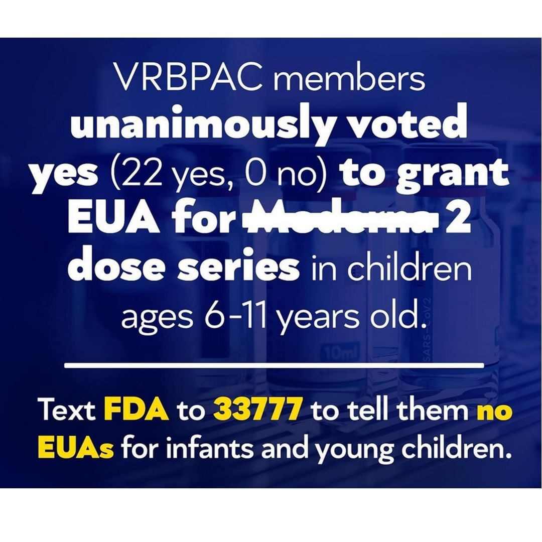 childrenshealthdefense Breaking: FDA's VRBAC voted today 22-0 to authorize M0derna