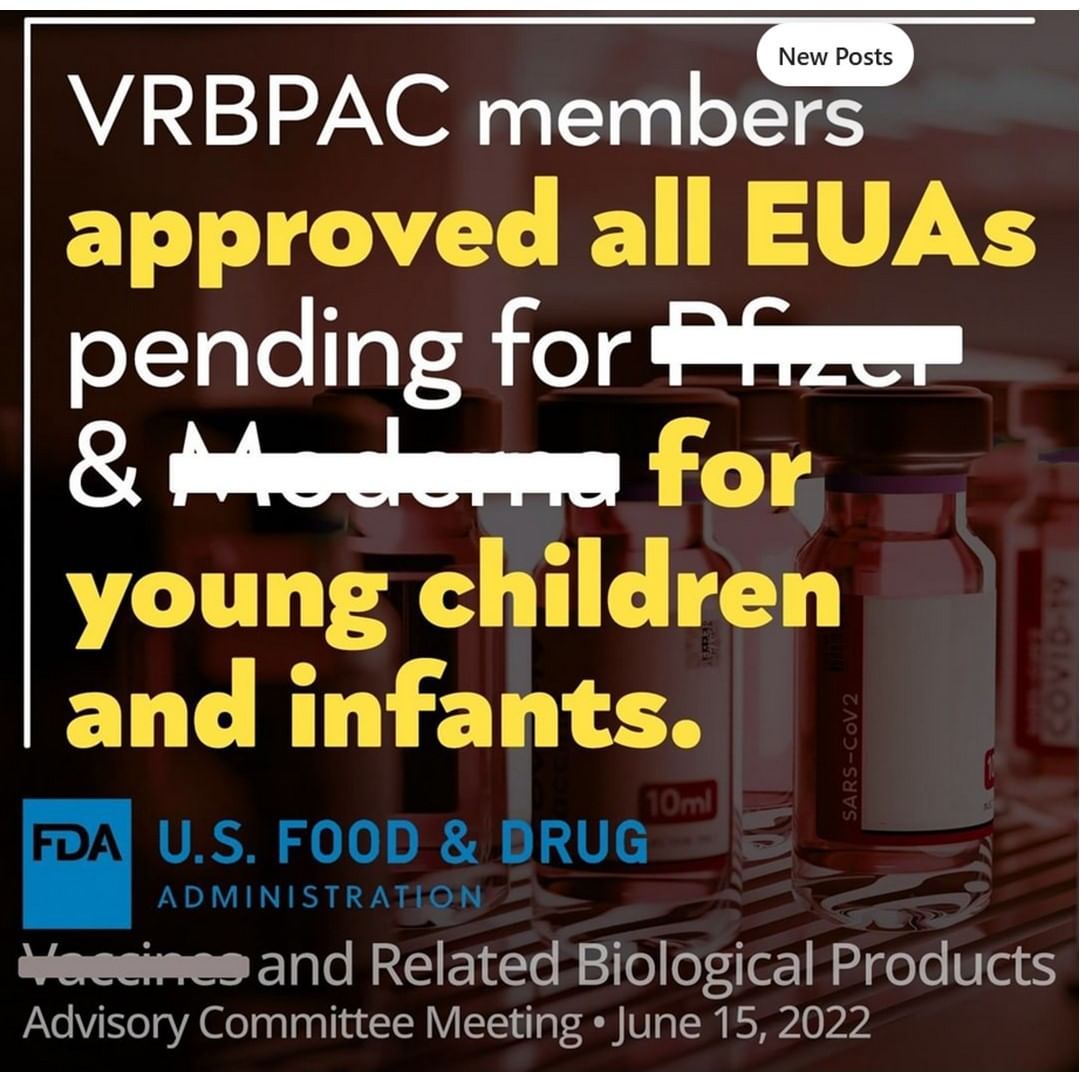 childrenshealthdefense 💔 UNANIMOUS: VRBPAC approved M0d erna + Pf1 zer for 6 mos. – 5/4 years old.