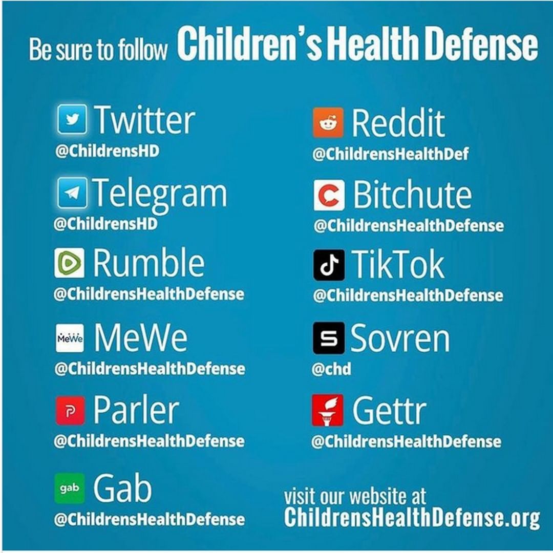 There is not just one "game in town" when it comes to social media. You can keep in touch with CHD on all of these platforms. Sign up for their newsletter at childrenshealthdefense.org.