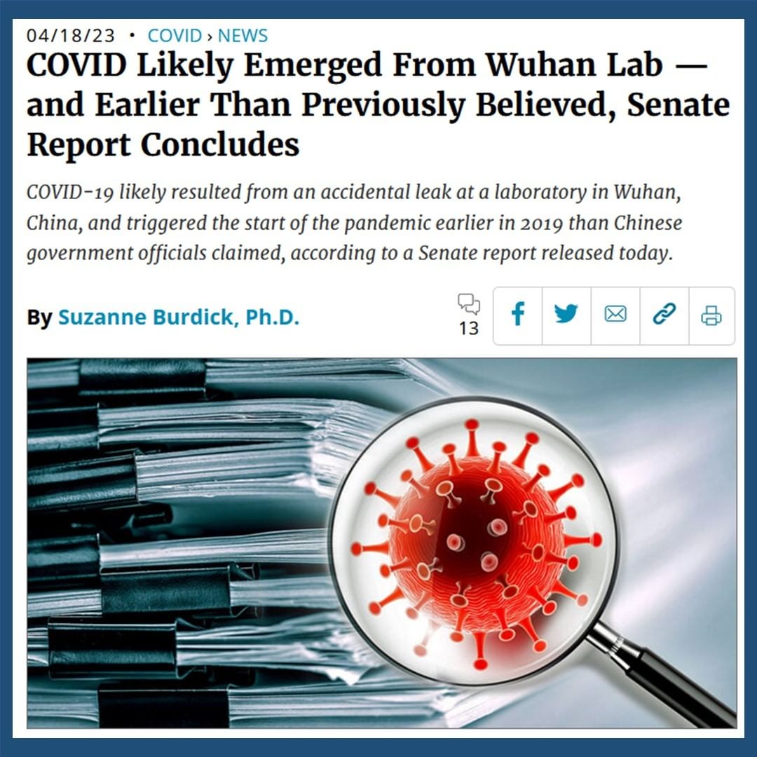 “A preponderance of evidence in this report suggests there were two separate unintentional lab leaks dating back to fall of 2019 in Wuhan, China with significant evidence supporting that COVID-19 was a lab-created and altered virus.”