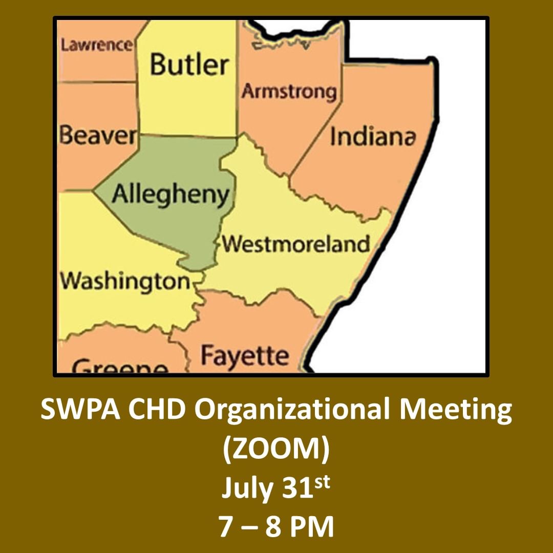 If you are interested in connecting with people or interested in becoming more active with CHD in South West Pennsylvania please mark your calendars and join with us on July 31st at 7pm.