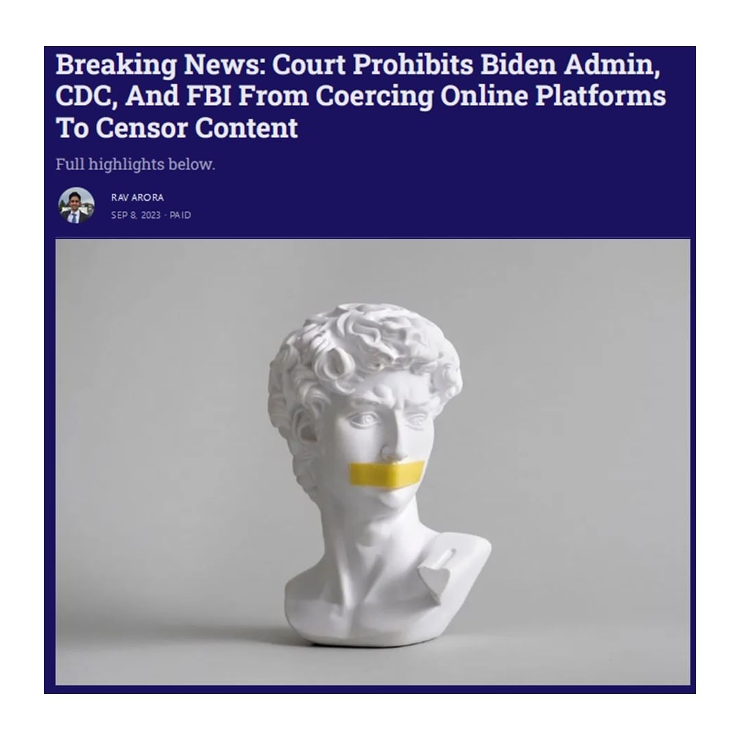 The court’s decision is technically mixed — as they vacated most injunctions and reversed the censorship prohibition on some groups (CISA, NIAD, and Department of State) — but the outcome is ultimately good: the court upheld the key injunction in the case which prohibits the Biden administration, CDC, FBI, and Surgeon General from "coerc[ing] or significantly encourag[ing] a platform’s content-moderation decisions."