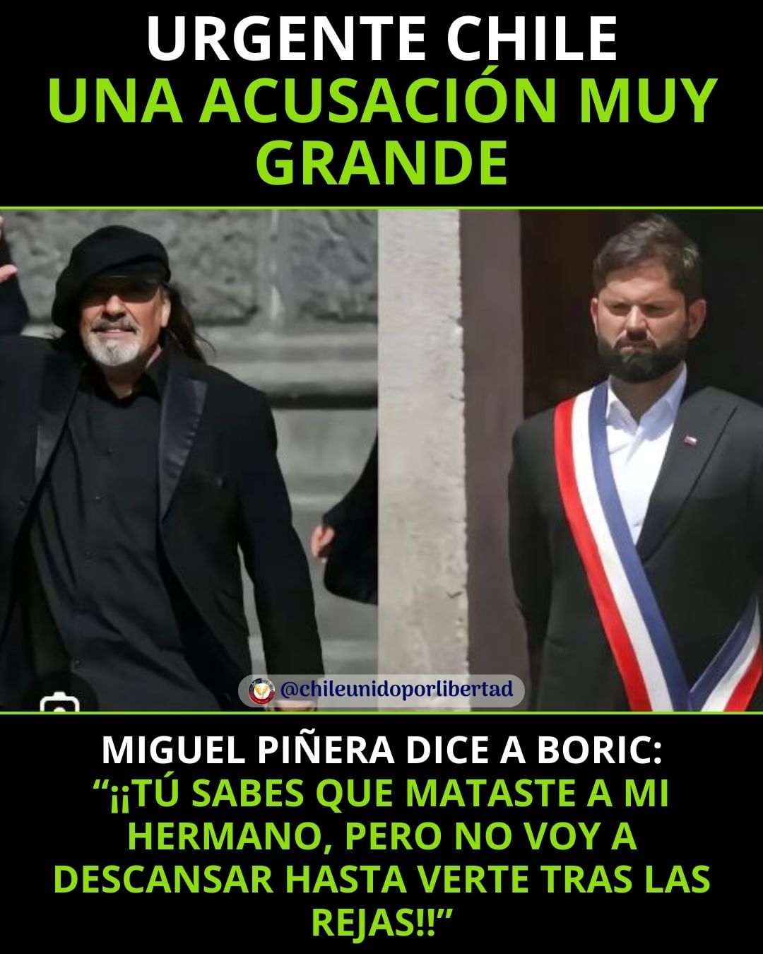 URGENTE CHILE UNA ACUSACIÓN MUY GRANDE MIGUEL PIÑERA DICE A BORIC: “¡¡TÚ SABES QUE MATASTE A MI HERMANO, PERO NO VOY A DESCANSAR HASTA VERTE TRAS LAS REJAS!!” Fuente: TikTok