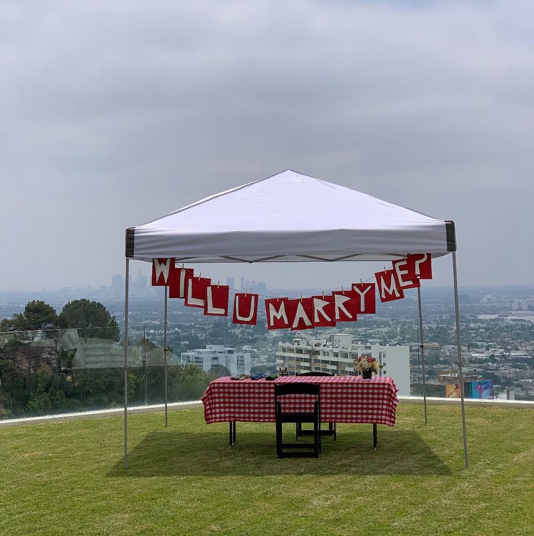We did. :) A few months ago, Simon woke me up & as I walked to the kitchen for coffee, I saw in the backyard what I thought was my “ARE YOU OKAY” booth (which was weird bc it’s not a permanent fixture in our yard, lol) but when I took a closer look I saw that Simon had written (in my handwriting and everything!) “WILL U MARRY ME?” He then asked me to sit in the booth w/ him & we had a long & beautiful talk abt what this commitment meant & how we wanted to build our lives together.