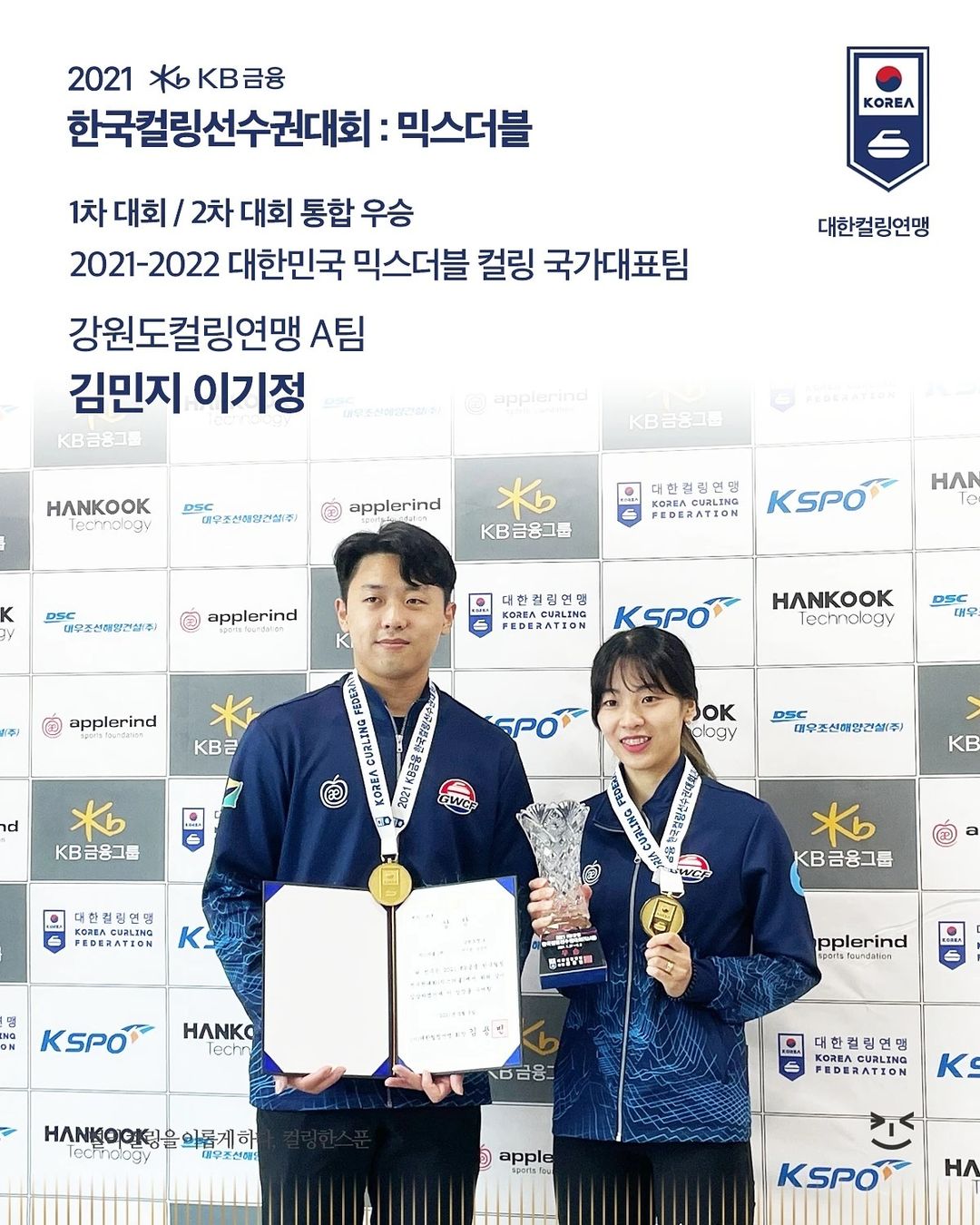 . 2021 KB금융 한국컬링선수권대회 : 믹스더블 1차대회/2차대회 통합 우승 - 강원도컬링연맹 A팀 : 김민지 이기정 코치 이승준 - 강원도컬링연맹 A팀 '민정수석' 김민지 이기정조가 지역예선부터 1차대회, 2차대회를 모두 거치며 총 19전 전승 무패로 완벽하게 모두 우승하며, 2021-2022 대한민국 믹스더블 컬링 국가대표의 자리에 올랐습니다. 우승을 축하드립니다. 어려운 여건 속에서도 참여하신 모든 팀들 수고하셨습니다. - 마지막 드로우 경기결과 및 상비군 결정전 내용은 곧 이어 포스팅하도록 하겠습니다. - #컬링 #컬링한스푼 #컬링국선 #컬링국선2021 #컬링믹스더블 #믹스더블컬링 #curling #kcc2021 #kcc2021md
