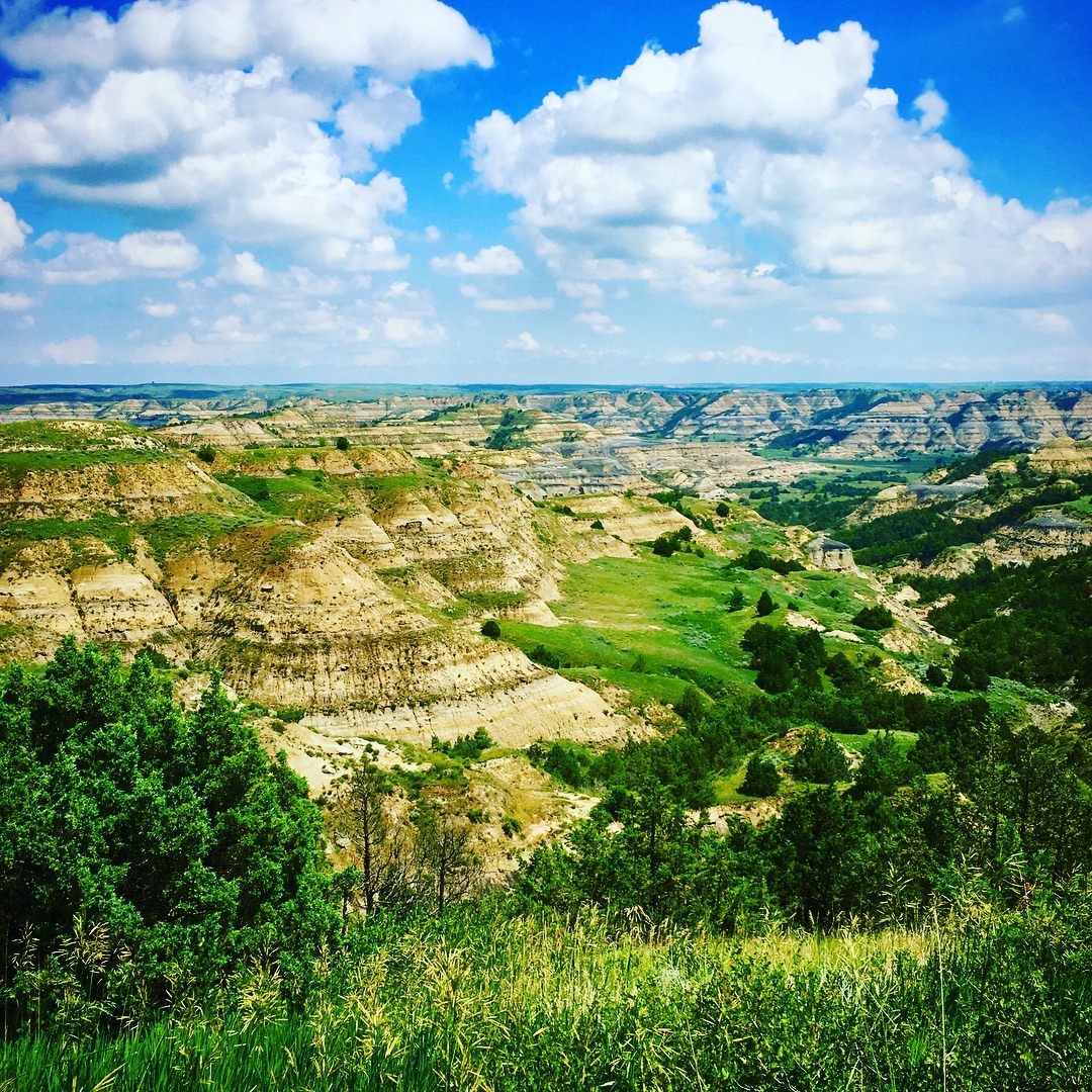 Views of @theodorerooseveltnps in honor of #presidentsday. With @clayjenkinson outside of Watford City, North Dakota... where the bison roam.