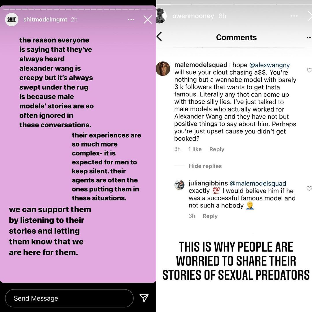 TW: Just days after designer Alexander Wang’s birthday, where top models and celebrities celebrated the New York designer with Instagram tributes, the internet is abuzz with allegations of his predatory, substance-fueled behavior. ⠀⠀⠀⠀⠀⠀⠀⠀⠀ The designer has built his brand around a hard partying, anything goes ethos, creating "walk of shame"-inspired campaigns and even casting R. Kelly in his SS17 campaign. His own, almost mythic, status as a NYC party figure, has even been alluded to with models walking the runway in “PARTY ANIMAL” and “WANGOVER” headbands for SS18. But now, tales from behind the velvet rope are spilling out. ⠀⠀⠀⠀⠀⠀⠀⠀⠀ It began with Owen Mooney, a male model who came forward this weekend in a series of Tiktoks describing a 2017 incident where he was groped by Wang in a packed NYC nightclub. @shitmodelmgmt (SMM) reposted his story, leading many others to come forward. Some claimed to have witnessed a victim being drugged by the designer, or being slipped Molly or other drugs themselves without their knowledge, leading to blacked-out nights and worse. ⠀⠀⠀⠀⠀⠀⠀⠀⠀ There are also repeat allegations of victims, including several trans women, being groped or having their bodies or genitals exposed by Wang. Rapper and former Wang muse Azealia Banks shared anonymous accounts she had been sent on her Instagram stories in late 2019, and while the originals have been deleted, the screenshots still circulate on Twitter. Searching Twitter in fact yields many more tweets detailing similar behavior from the designer, some dating back several years. ⠀⠀⠀⠀⠀⠀⠀⠀⠀ SMM brought up that male model's stories are often not given enough attention, and Mooney has shared some of the backlash he’s already received. “This is why people are worried to share their stories of sexual predators,” he captioned a story of a comment accusing him of ousting Wang in an attempt to gain clout. ⠀⠀⠀⠀⠀⠀⠀⠀⠀ A darling of the industry with multiple accolades, Wang is the latest in a string of powerful, influential fashion figures who have been h