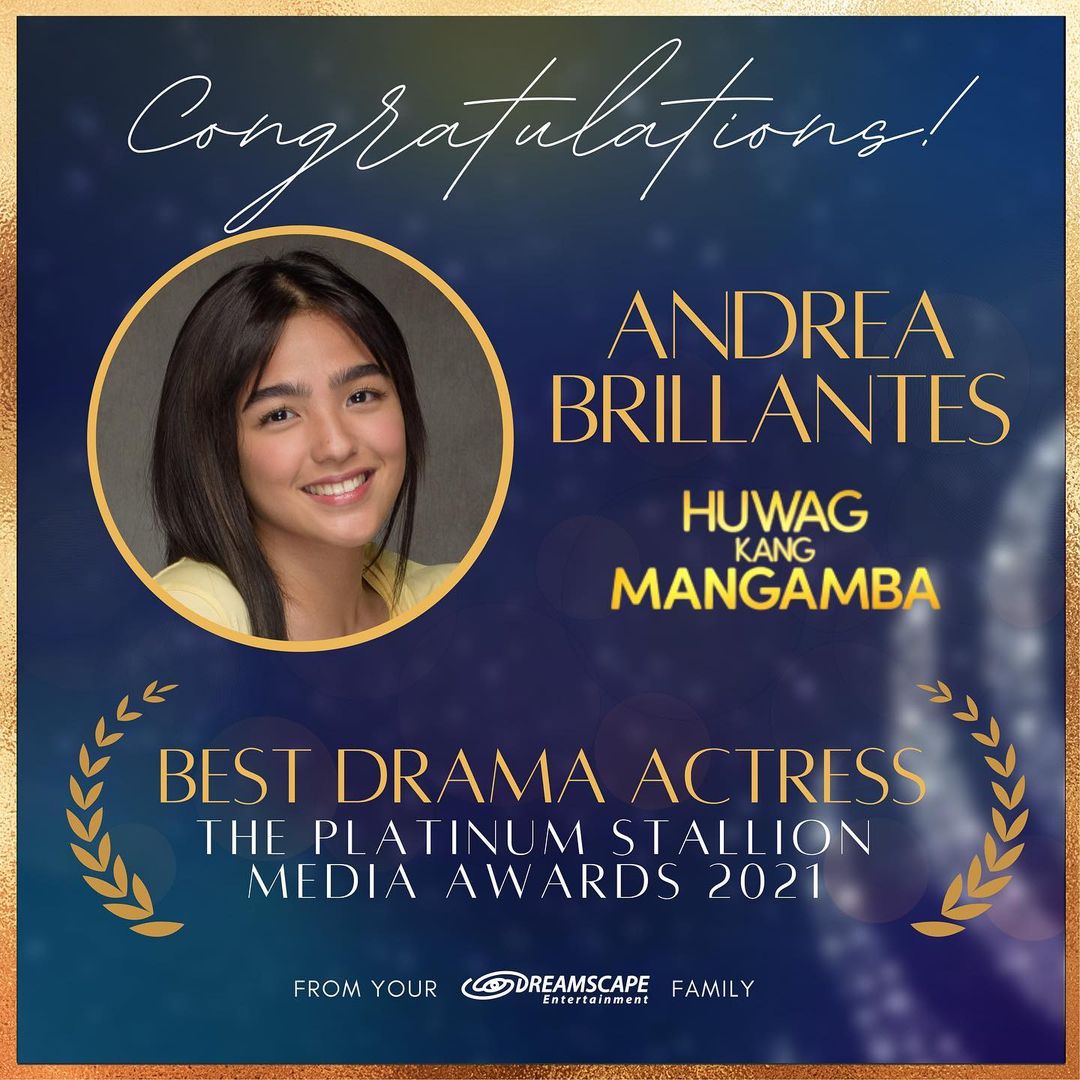 Congratulations @blythe — BEST DRAMA ACTRESS for the teleserye #HuwagKangMangamba in The Platinum Stallion Media Awards 2021. We’re so proud of you, Kapamilya!