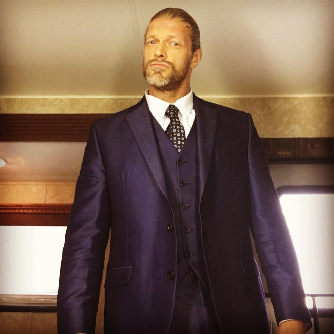 Who is this rugged(notice I didn’t add handsome)man in a sharp suit with a gash on his large cranium? Well, it’s me, playing a fun new character. And taking selfies, with duckface, in my trailer. It’s very boring between scenes sometimes, what can I say?