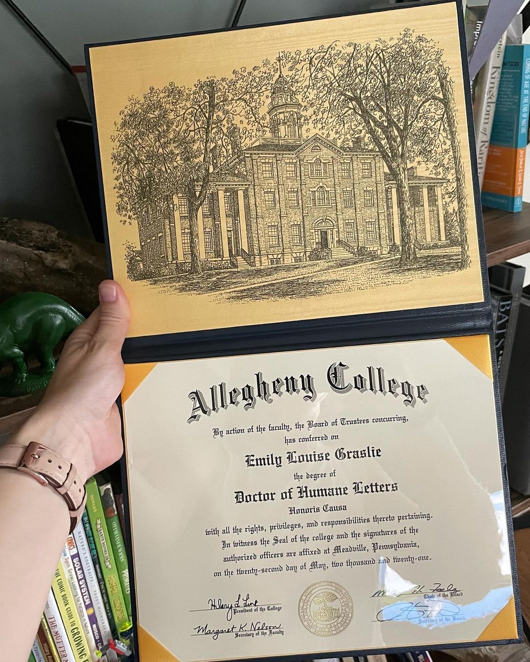 SOOO… Today I accepted the award of an honorary degree, Doctor of Humane Letters, from Allegheny College. 😬🥳