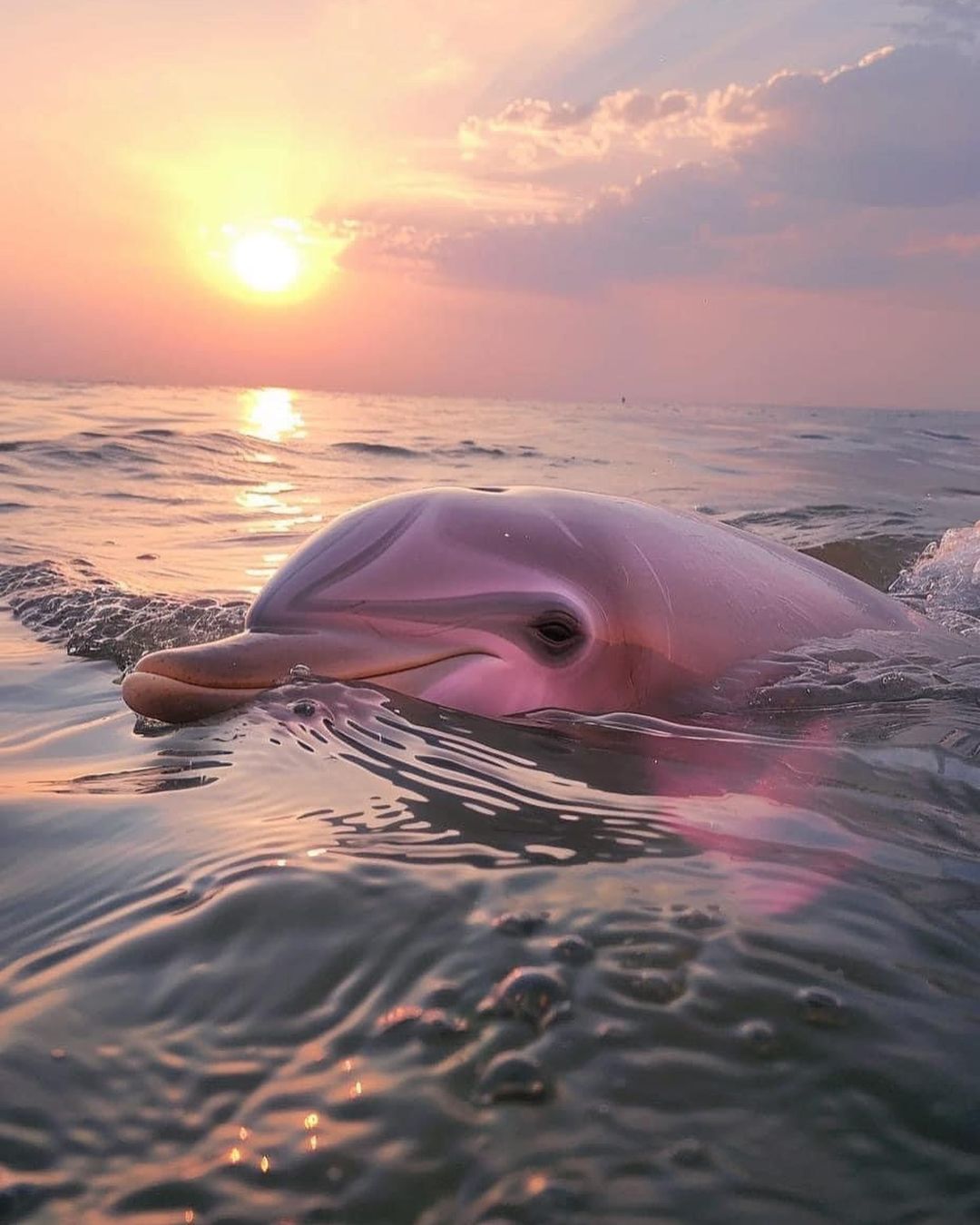 🐬 🩷 This rare pink dolphin was spotted on the North Carolina state coast🩷😲