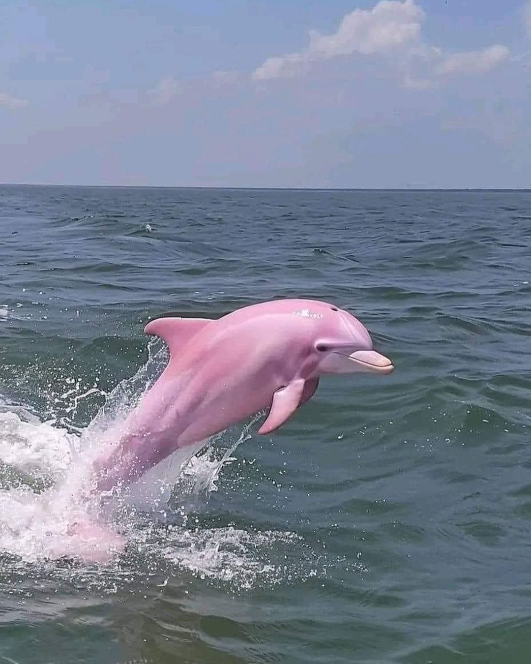 🐬 🩷 This rare pink dolphin was spotted on the North Carolina state coast🩷😲