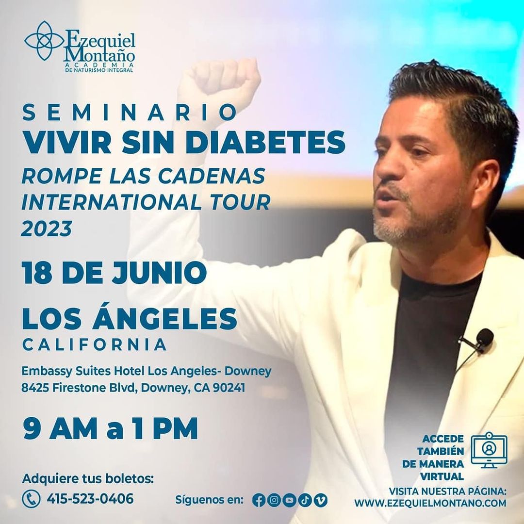 Asiste a este seminario en tu ciudad y te revelaré el secreto para vivir sin diabetes 🤩👏🏻 ⏰🗓️ Domingo 18 de junio de 9:00 a.m. a 1:00 p.m.