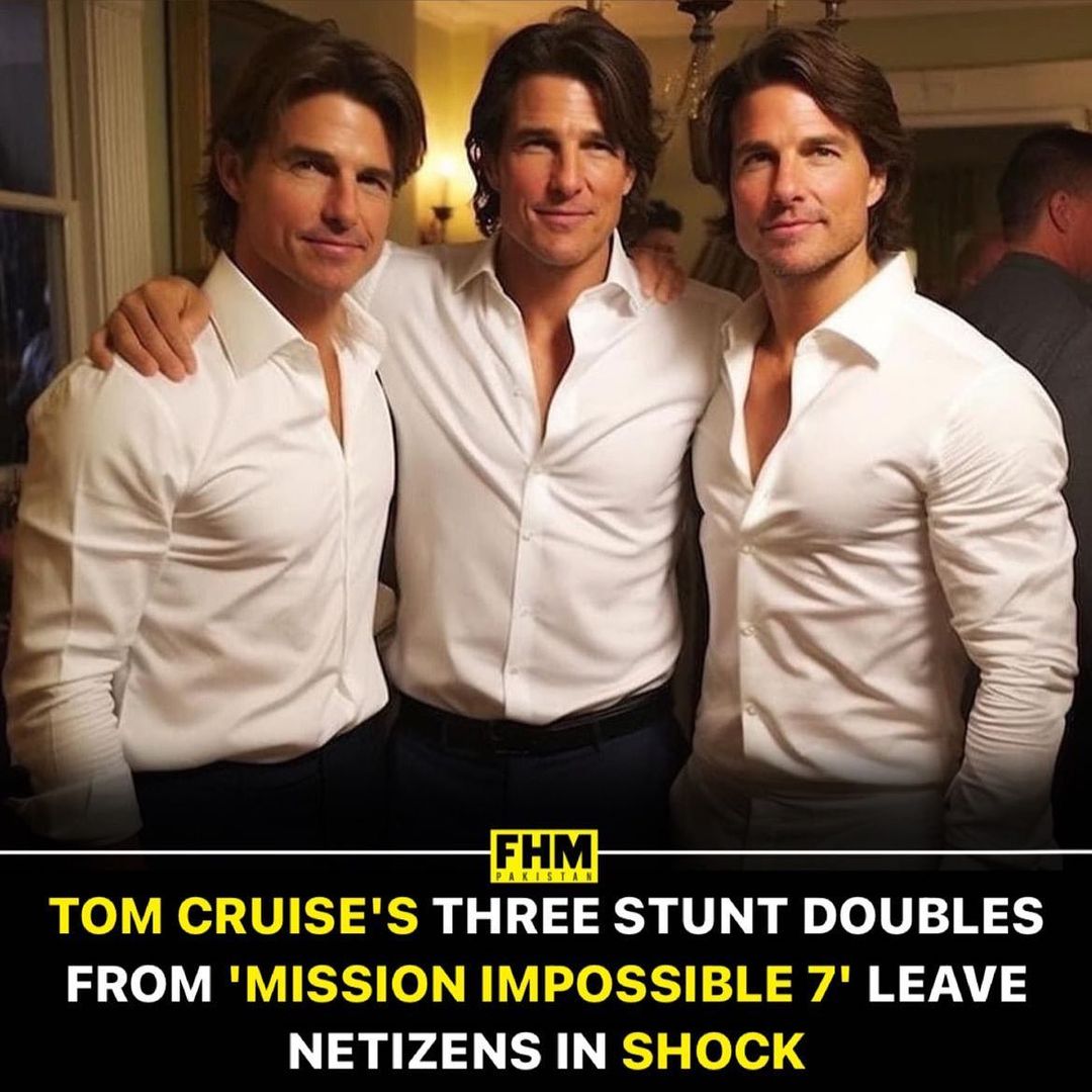 A picture of Tom Cruise's three stunt doubles from the film "Mission Impossible 7" baffled netizens. The internet was left in shock at the uncanny resemblance that the three men in the frame shared with Tom Cruise. #fhmpakistan