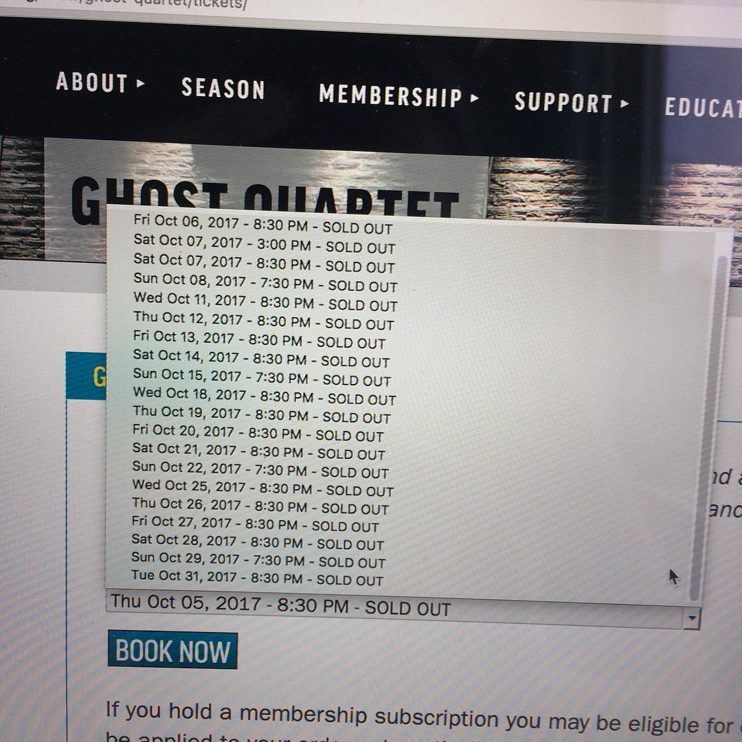 The entire Ghost Quartet run in October just sold out in 29 minutes. That's crazytown you guys.