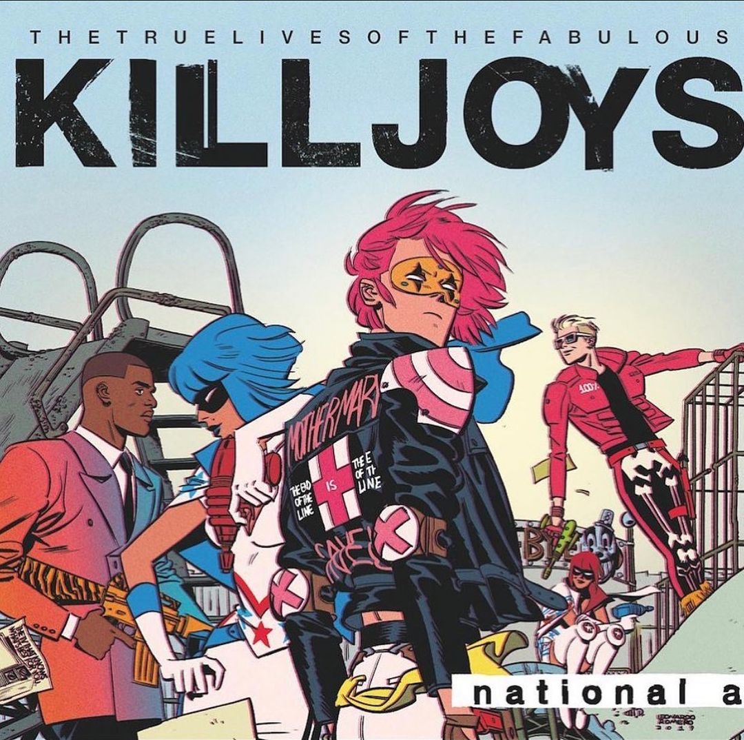 Yesterday, we announced a new True Lives Of The Fabulous Killjoys series: National Anthem. We’re really excited about this book, because we take everything back to the original concept for the series that could have been, many years ago, before it became an MCR concept record and subsequent comic series, now known as TLFK: California. The first thing to know about National Anthem is that it’s very different from any Killjoys material you have seen, read, or heard before. You may recognize some visual elements of the characters, but these are completely different characters from the gang we saw in California 2019. These are the original characters: Mike Milligram, The Codes— Red and Blue, Animax, Kyle 100%, and a ton of others, as well as changes these characters go through years later, and an eventual new member of the gang. This story is set in the 1990’s and the 2000’s, in a world as its was back then. All these years later, Shaun and I couldn’t get this story out of our heads, and thought it was powerful, unique, and different enough from what we had done before to warrant actually making the thing, and I’m really happy we did. The first issue was written in one and a half weeks, about 44 pages long, and it was dying to get out. So, try and come to this with a fresh brain and unlearn everything you know about the Killjoys. It’s also a mature readers book. The creative team is one of the best I have ever worked with, some old friends and new friends. Shaun Simon co-writes with me, @leo_romero11 handles the line art, @whoajordie handles the colors, @natepiekos handles the letters, @beckycloonan as well as @prentler and others, handle the variant covers. And everyone is doing something they’ve never done before, and operating from a new and experimental place. It hits shops and digital on October 14th, published by @darkhorsecomics. We can’t wait for you to check it out. #tlfk #thetruelivesofthefabulouskilljoys #TLFKnationalanthem #nationalanthem #darkhorsecomics #booksontape