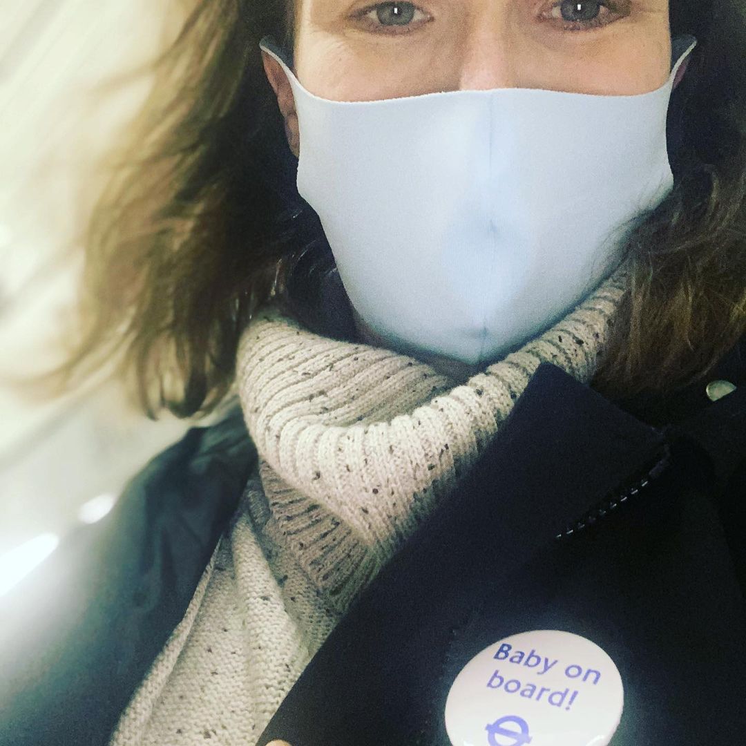 Baby on board... due into the station Feb 2021. 👶 🍼 Blue face-mask for a boy - a true COVID-themed “gender-reveal” xxx