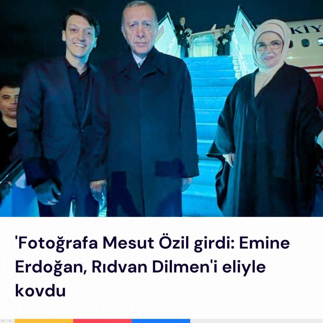 Mesut Özil, Erdoğan'ın cumhurbaşkanı seçilmesini kutlayarak Ankara'da çekildikleri fotoğrafı 'Hamdolsun' notuyla paylaştı. Emine Erdoğan, Rıdvan Dilmen'in kareye girmesine izin vermedi.