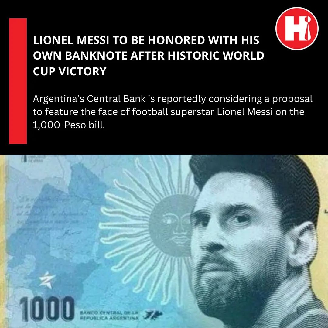 The idea to honor Messi with his own banknote, which would feature his face on the front and an image of Argentina raising the trophy on the reverse, was initially put forward as a joke but has since gained serious consideration by bank officials who are fans of the sport.