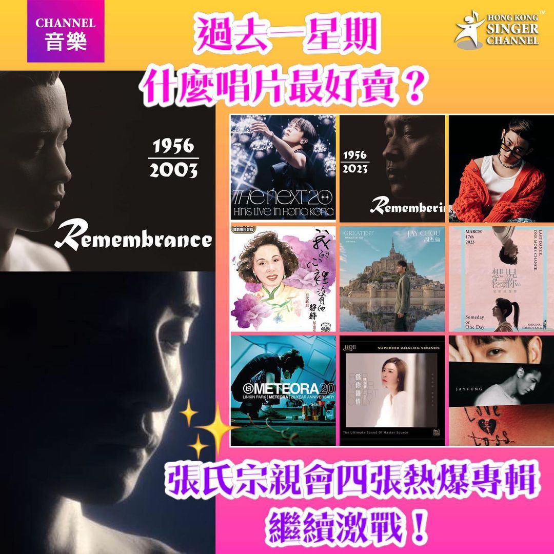 過去一星期什麼唱片最好賣?根據香港唱片商會新一期唱片銷量榜,《REMEMBRANCE Leslie》繼續稱冠,蟬聯三星期No.1,張敬軒的《The Next 20 Hins Live in Hong Kong》回升一級佔亞軍,《REMEMBERING Leslie》退一級一級佔季軍, MC張天賦的《This is MC》繼續守住殿軍。張氏宗親會又贏哂!