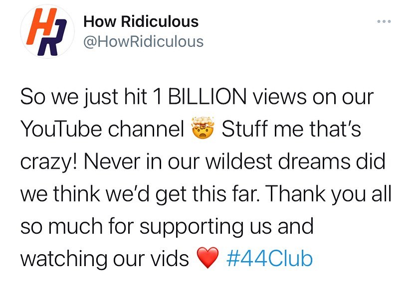 1 BILLION VIEWS on @youtube! 🤯 THANK YOU SO MUCH 44CLUB 🥰