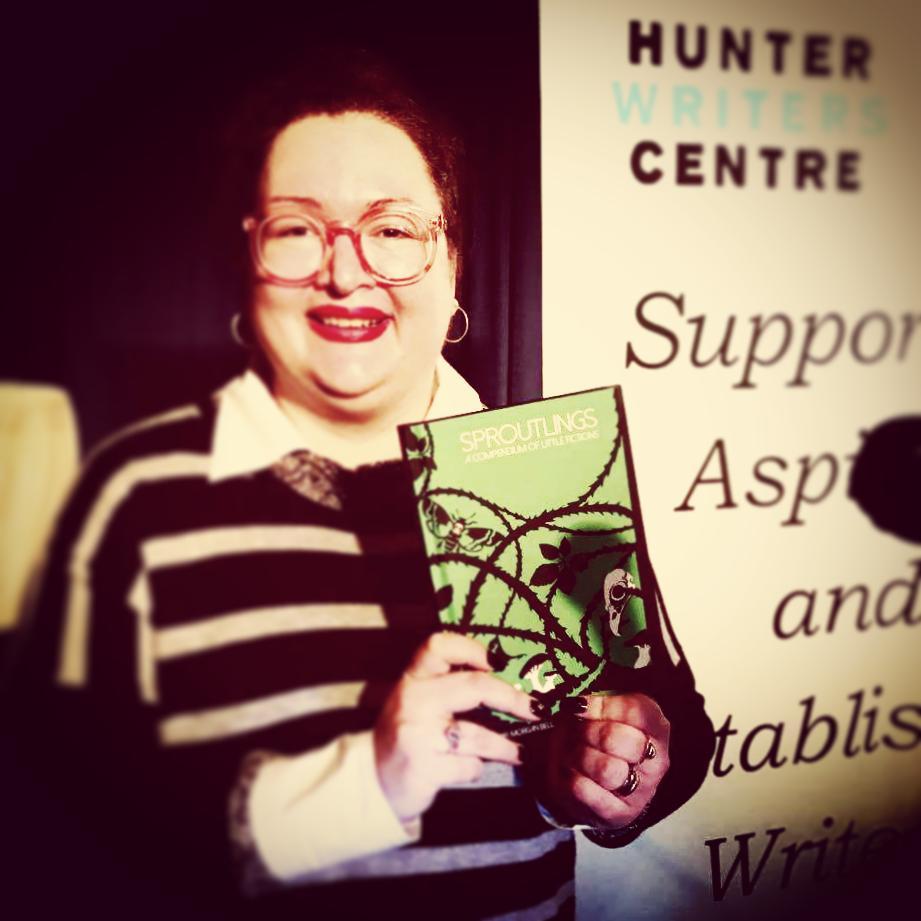 Thanks Robert Edmonds for taking this photo of Morgan Bell with her anthology Sproutlings: A Compendium of Little Fictions, featuring many Hunter Writers Centre members. Tonight Morgan read Mark Liston's story Wicked Weeds at the Dungeon Live Reading. Includes member stories from Magdalena Ball, Catherine Moffat, Christy Lutz, Peter Cook, Willie Southgate, Sharon Boyce, Vesna McMaster, and many other local personalities.