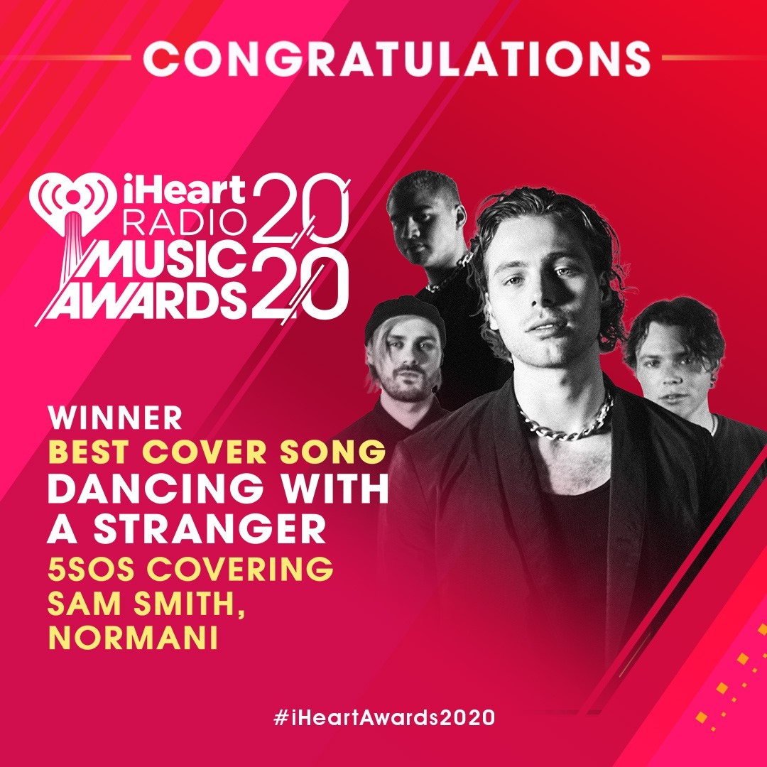 You voted so many times you almost broke our voting platform 🤣 and after tallying all of the votes, we are excited to announce that @5SOS has won #BestCoverSong at our #iHeartAwards for their amazing rendition of "Dancing With A Stranger."